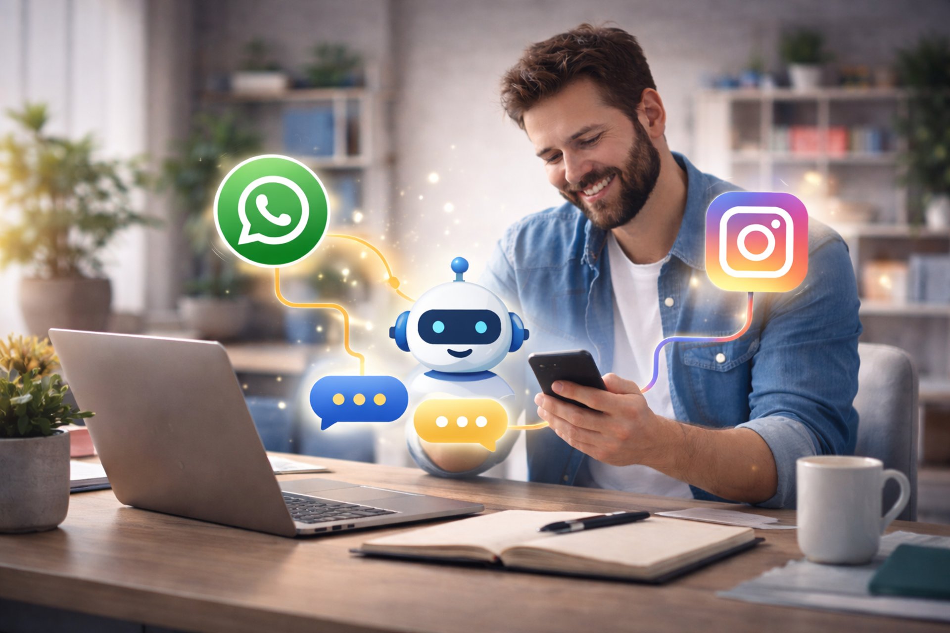 Enquanto você trabalha, dorme ou atende outros clientes, sua automação continua conversando, respondendo e qualificando contatos no WhatsApp e Instagram.