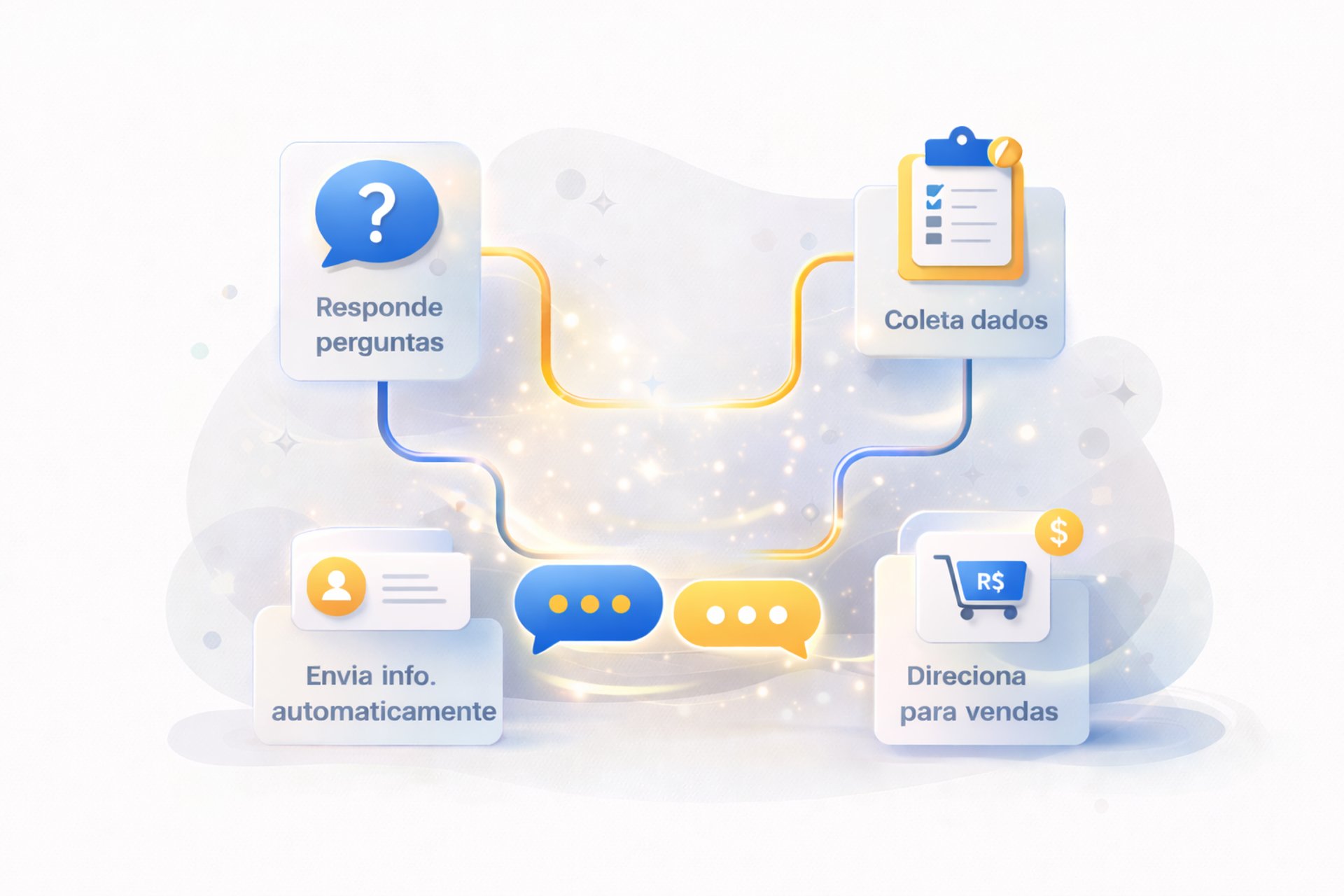Responder manualmente tudo isso consome tempo, gera atrasos e faz você perder vendas sem perceber.